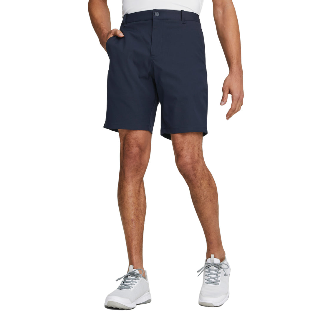 Le short de golf PUMA Dealer 8" allie performance et style professionnel. Son tissu extensible et respirant vous assure un confort optimal tout au long de la journée, et sa protection solaire UPF 50+ vous protège efficacement des rayons nocifs du soleil.