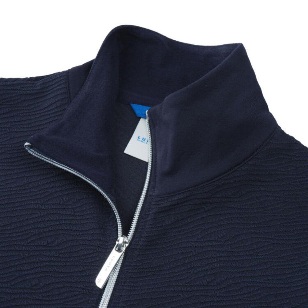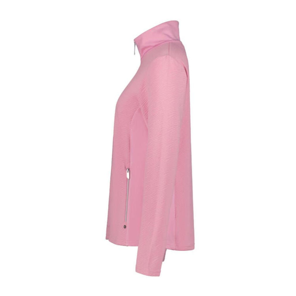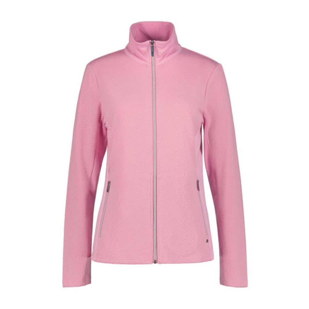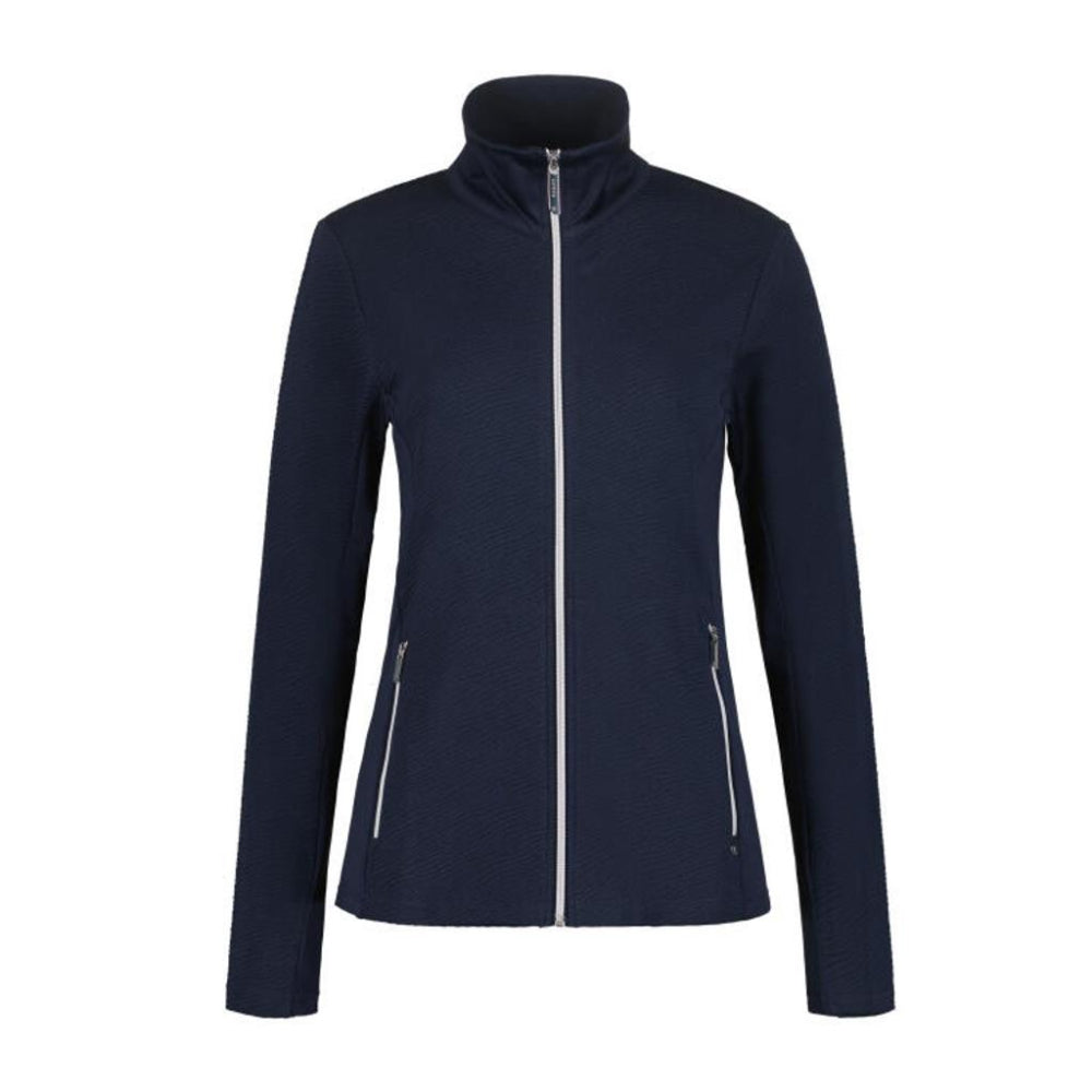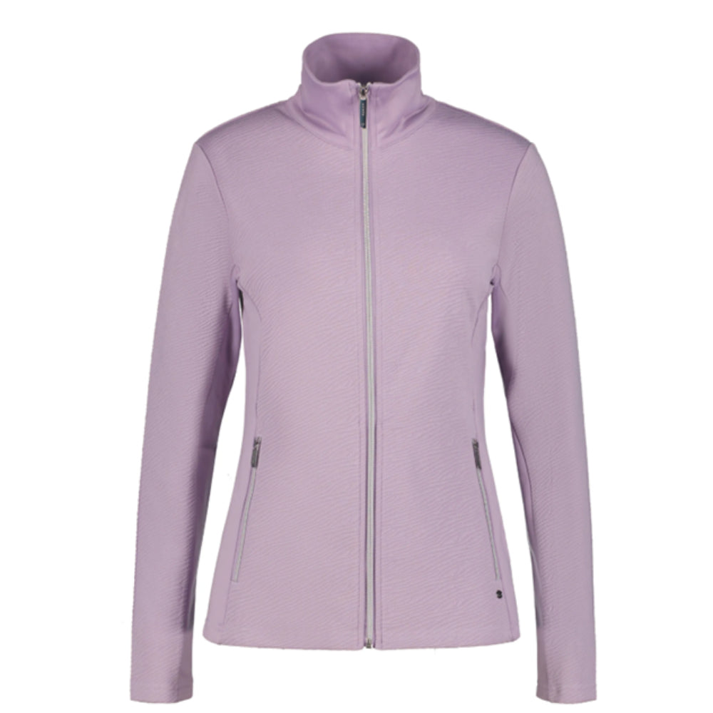 Luhta couche intermédiaire pour femmes. Coupe régulière. Deux poches zippées à l'avant. Fermeture éclair sur le devant. Motif de fond. Étiquette avec logo.