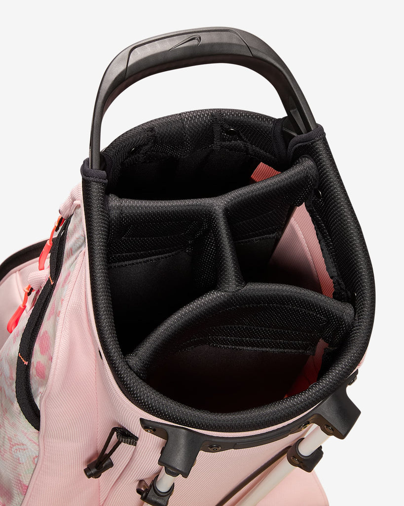 Portez vos habits du dimanche avec le sac de golf Nike Air Sport 2. Une sangle réglable offre une sensation d'équilibre pour que vous puissiez jouer les 18 trous en tout confort. Si le temps devient humide, une capuche permet de se protéger des éléments.